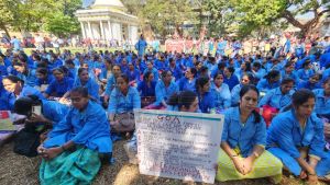 • Anganwadi workers join nationwide strike in Panjim (below).